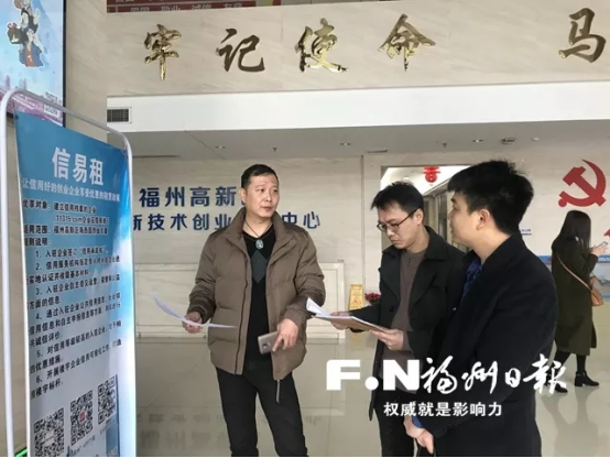 福州新聞網(wǎng)2019年2月23日,福州高新區(qū)在創(chuàng)業(yè)大廈試點(diǎn)“信易租”。福州高新區(qū)創(chuàng)業(yè)大廈一樓大廳,福建信盾信用管理有限公司的工作人員正和入駐企業(yè)宣傳“信易租。