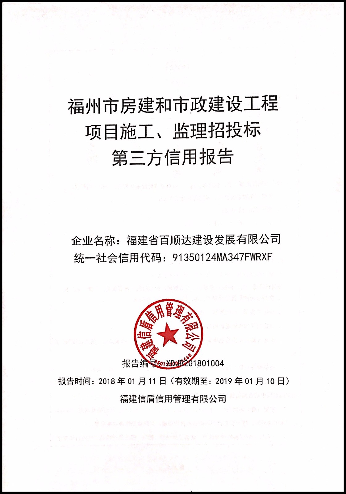 福建省百順達建設發(fā)展有限公司 XDJB201801004