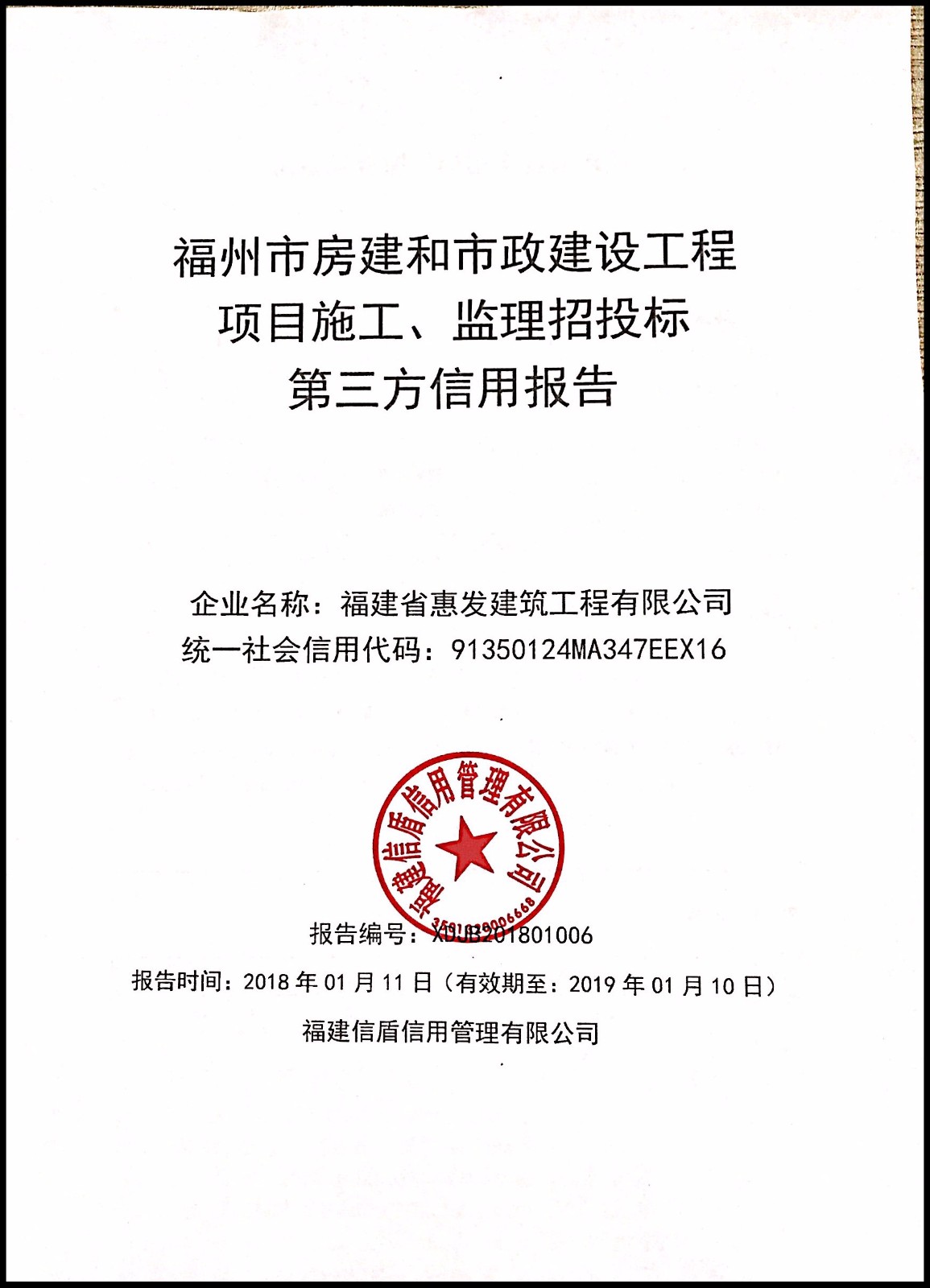 福建省惠發(fā)建筑工程有限公司 XDJB201801006