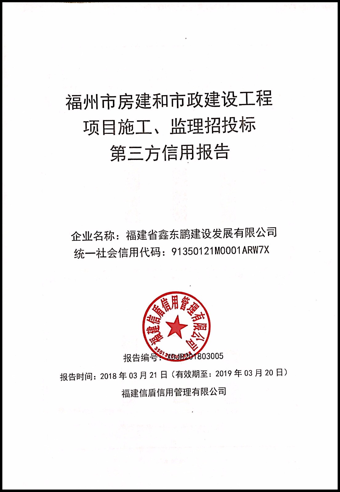 福建省鑫東鵬建設(shè)發(fā)展有限公司 XDJB201803005