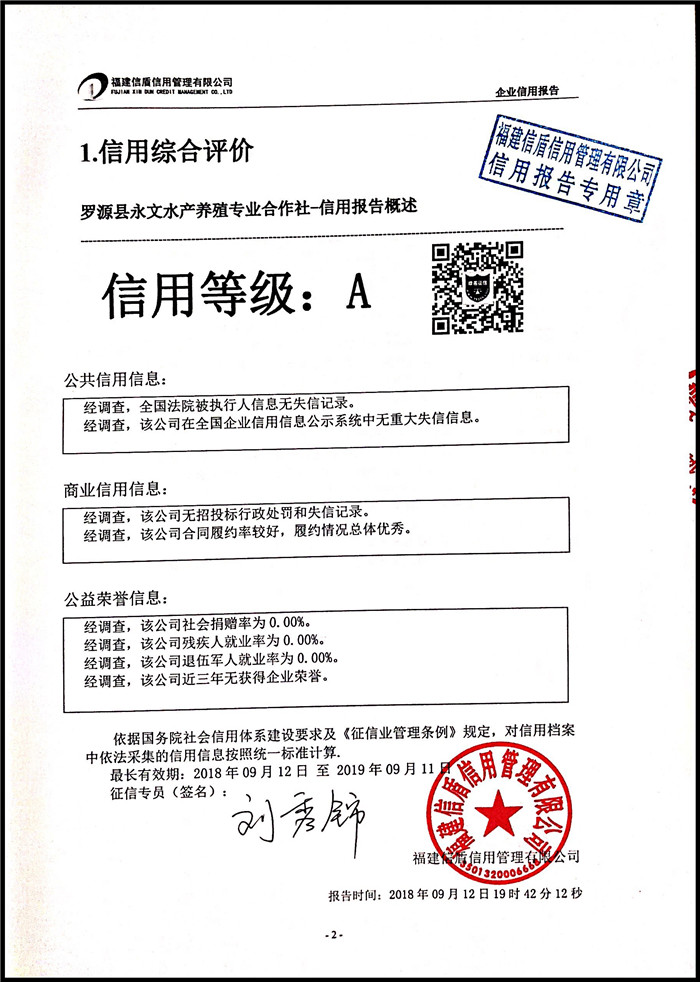羅源縣永文產(chǎn)養(yǎng)殖專業(yè)合作社 XDBD201809022