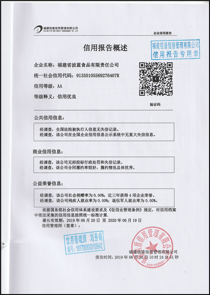 福建省波藍(lán)食品有限責(zé)任公司2019