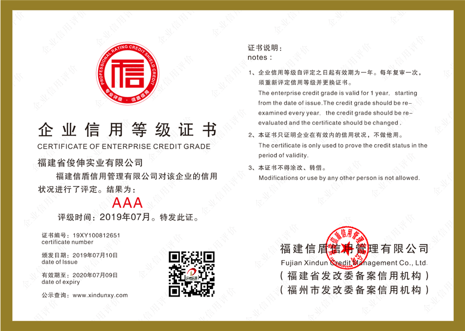企業(yè)信用等級證書
