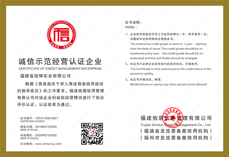 誠信示范經(jīng)營認(rèn)證企業(yè)